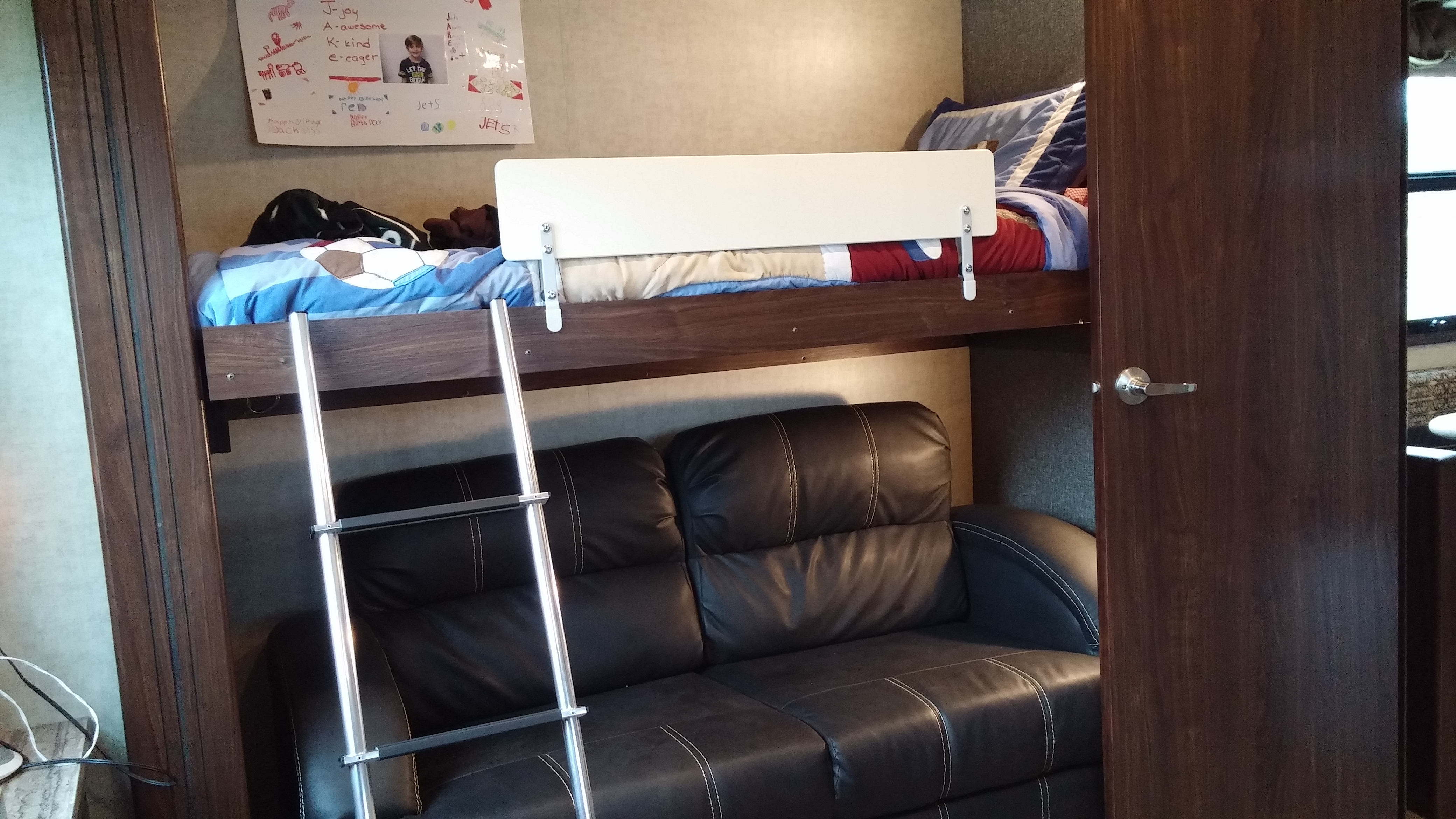 The other side of the room is Jake’s bed with a sofa underneath. The sofa makes a bed so Gramma and Grampa can come and visit! 🙂