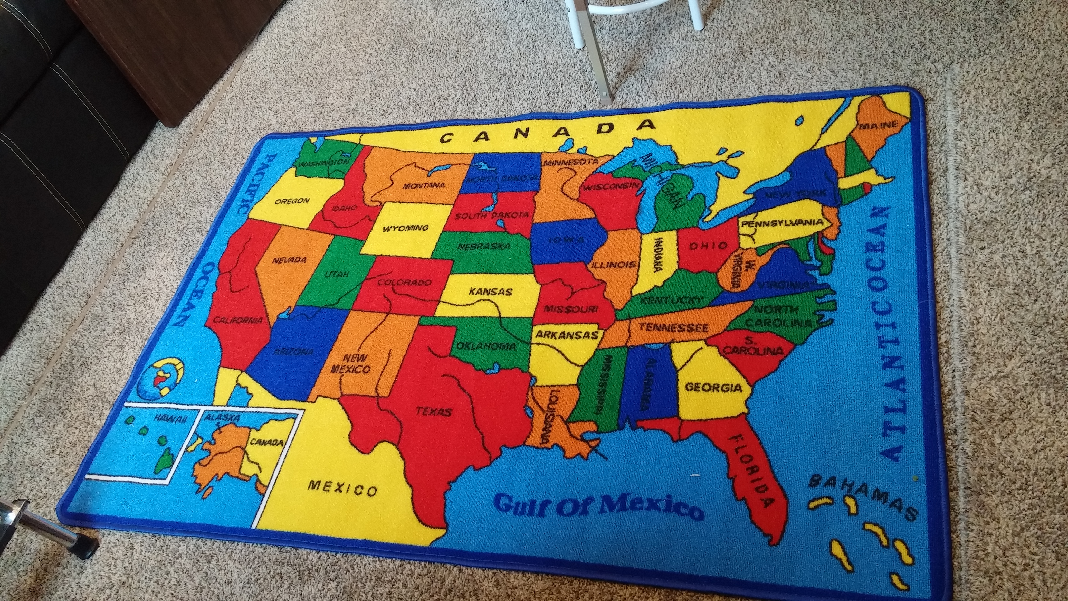 And I love this USA floor rug where they like to play with their cars and go to all the states we’ll be visiting.