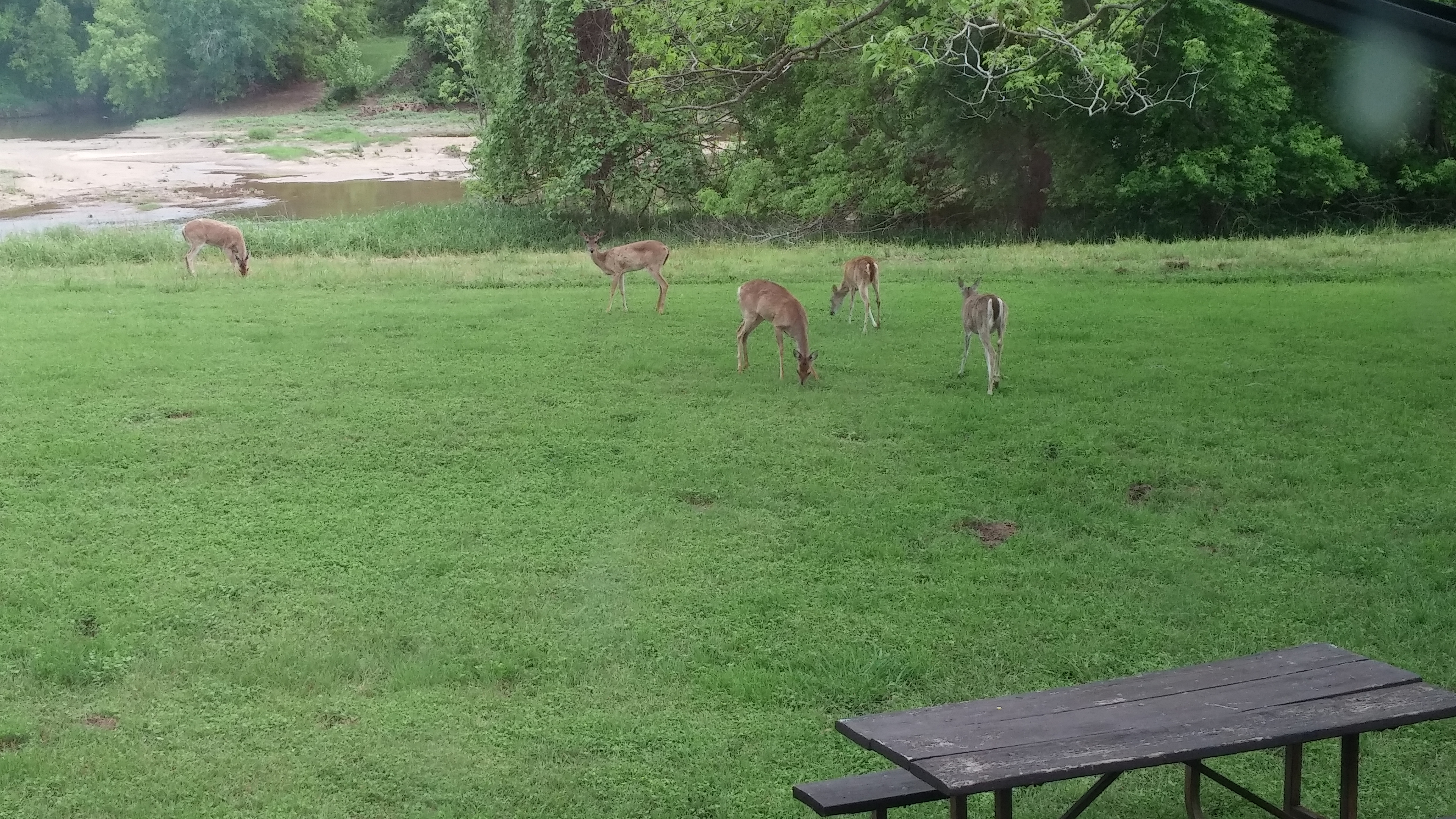 One thing we loved about this site is all of the deer!  There are so many of them and it was an everyday occurrence to see several of them eating in our yard.  It might have something to do with all the deer feed corn that Chris and the boys scattered all over. 🙂