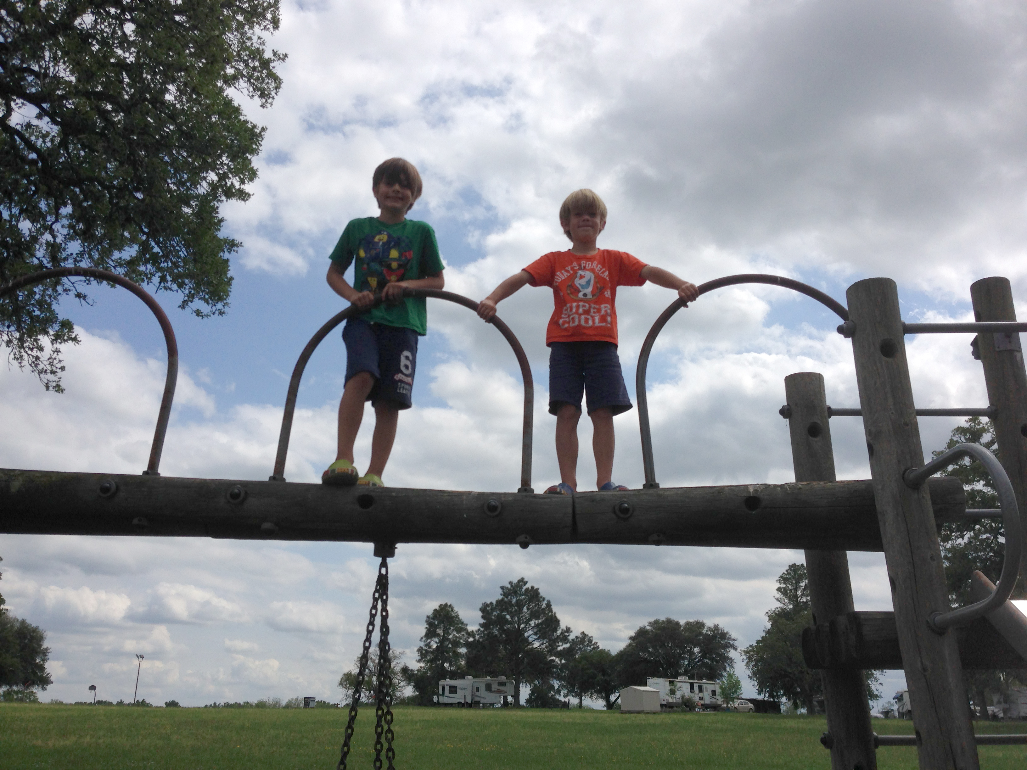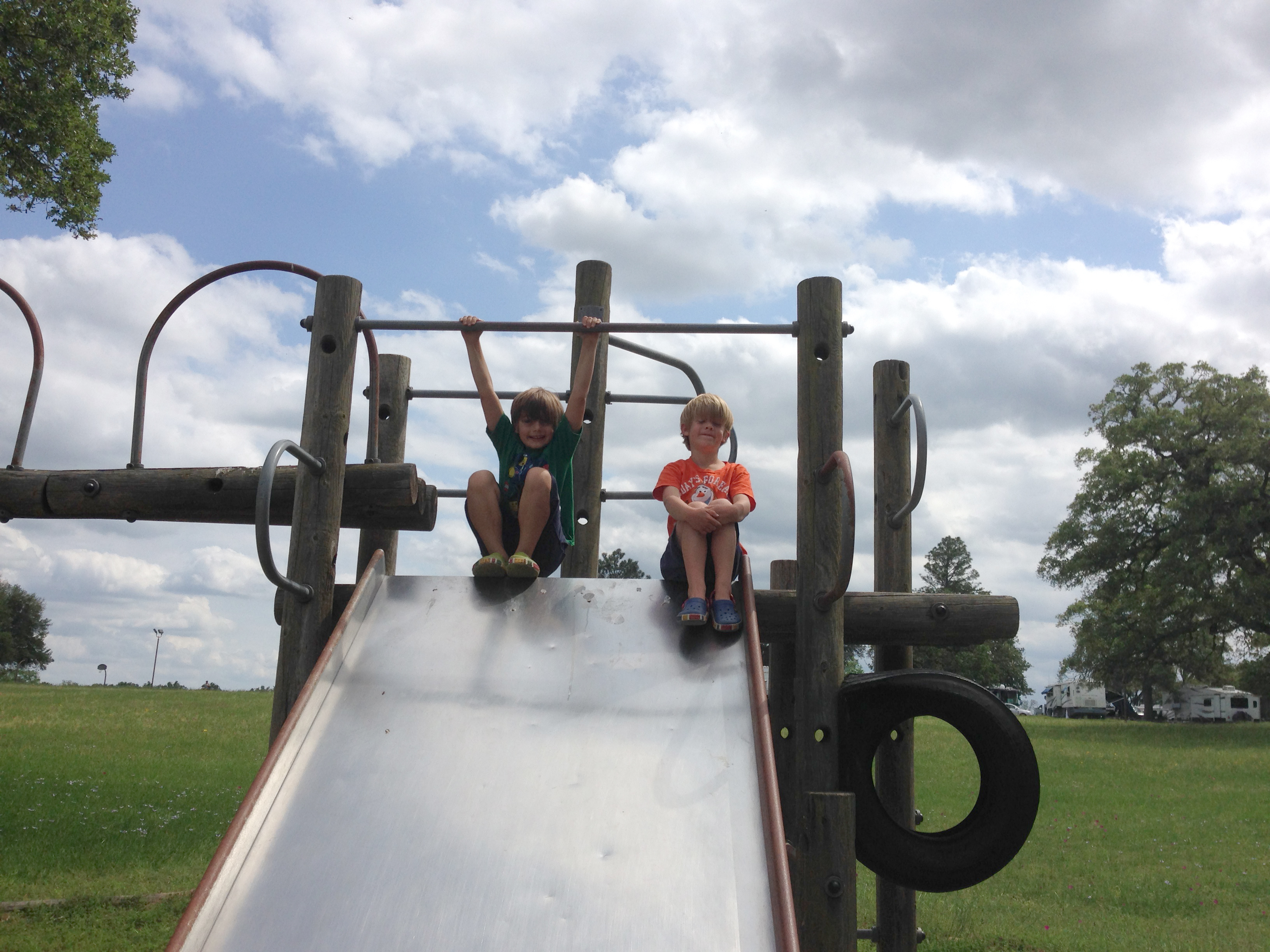 We are spending several weeks in Texas, and so far we are having a great time!  Our first stop was Thousand Trails Lake Conroe which is north of Houston.  My very dear friend Judy who I knew when I lived in Charlotte, NC now lives in The Woodlands, TX which is just about 20 minutes from the campground.  We got to spent a lot of time with her and her little girl Kylie.  Jake and Jesse used to love when Judy and Kylie would visit us in Florida, but since they moved to Texas 3 years ago we haven’t seen them.  So it was really fun to get to spend some time catching up with them.  They stayed with us for Easter weekend in Lake Conroe.  The campground had visits with the Easter Bunny and an Easter egg hunt on Saturday that was really fun for the kids: