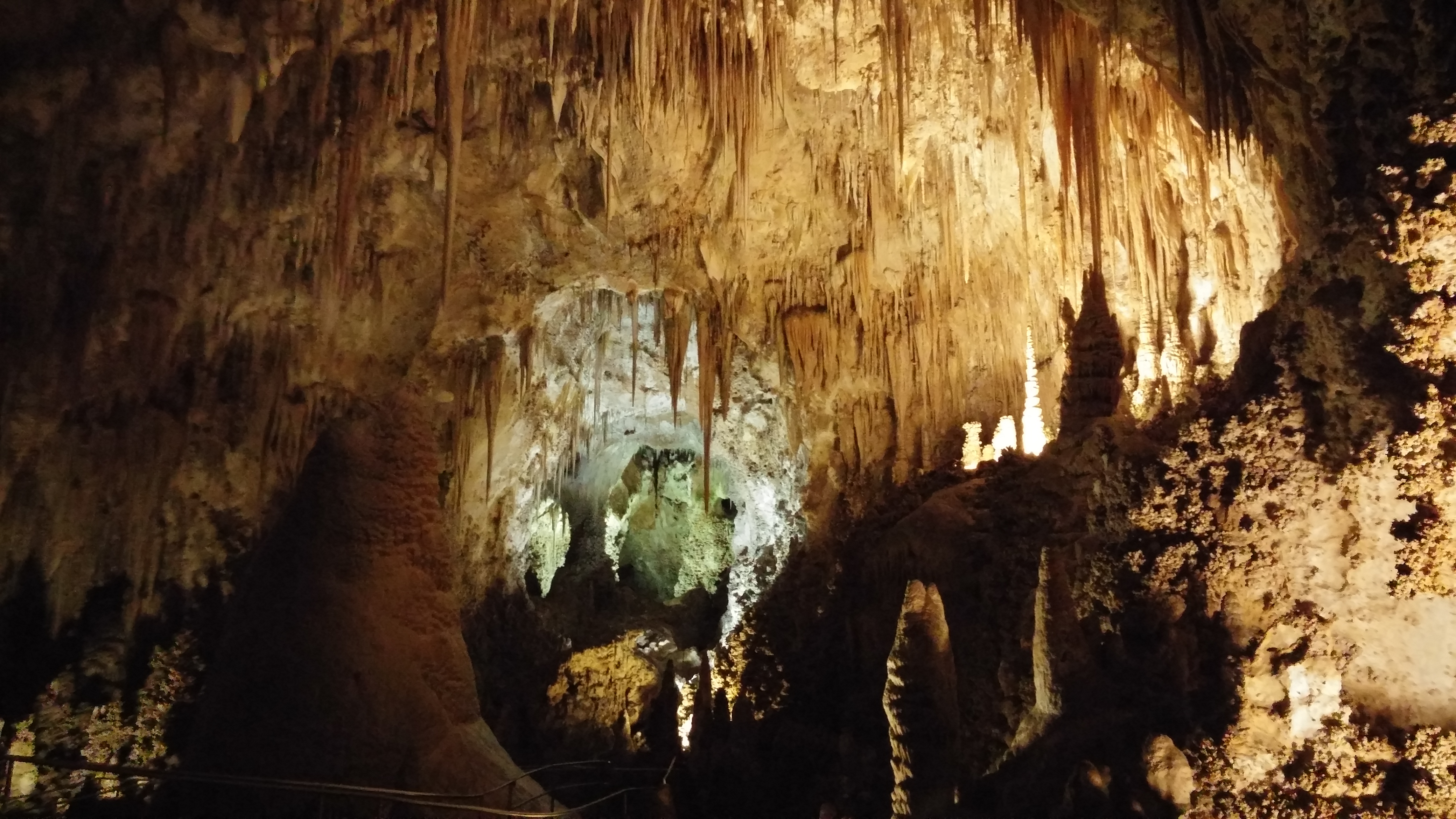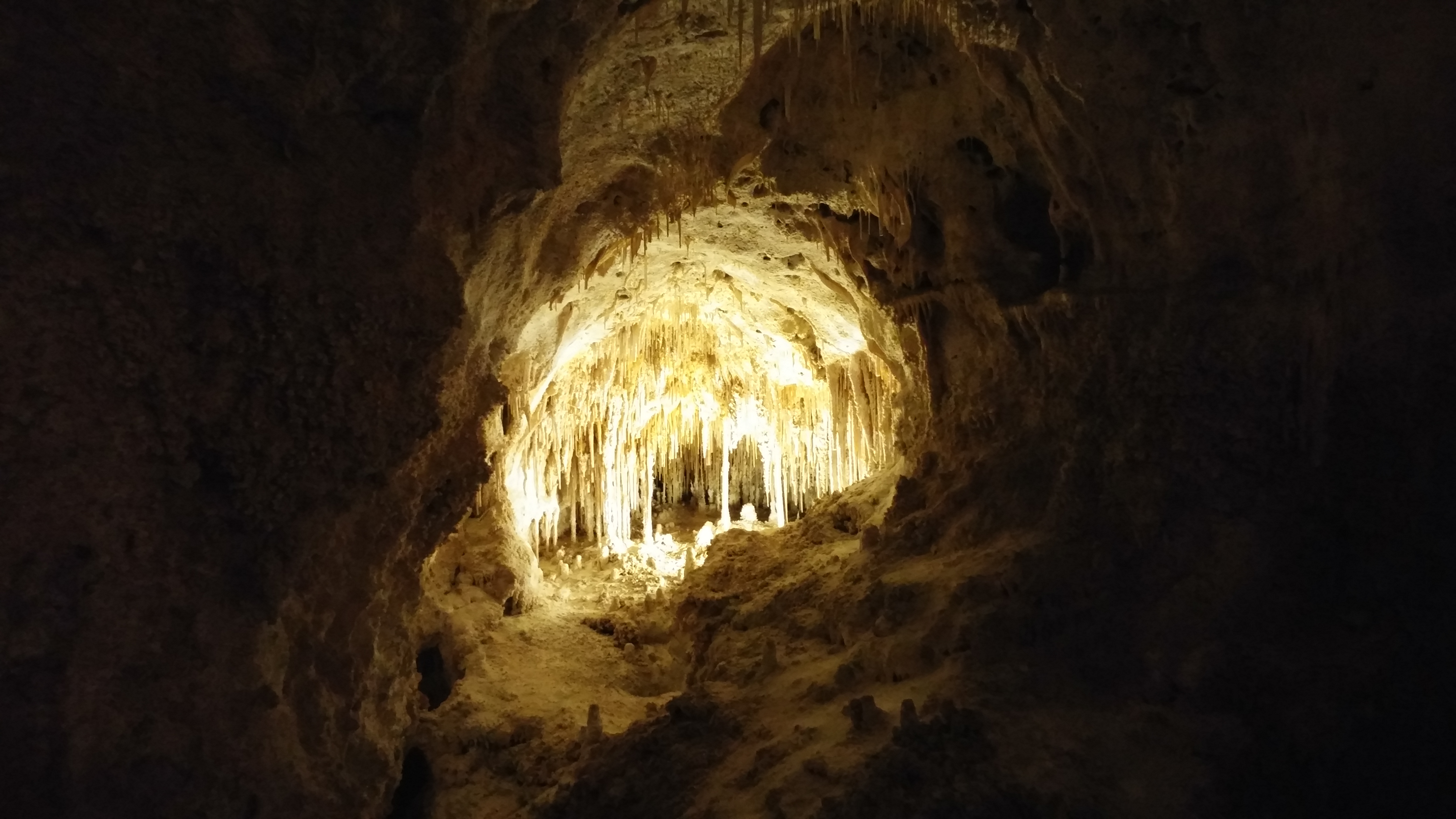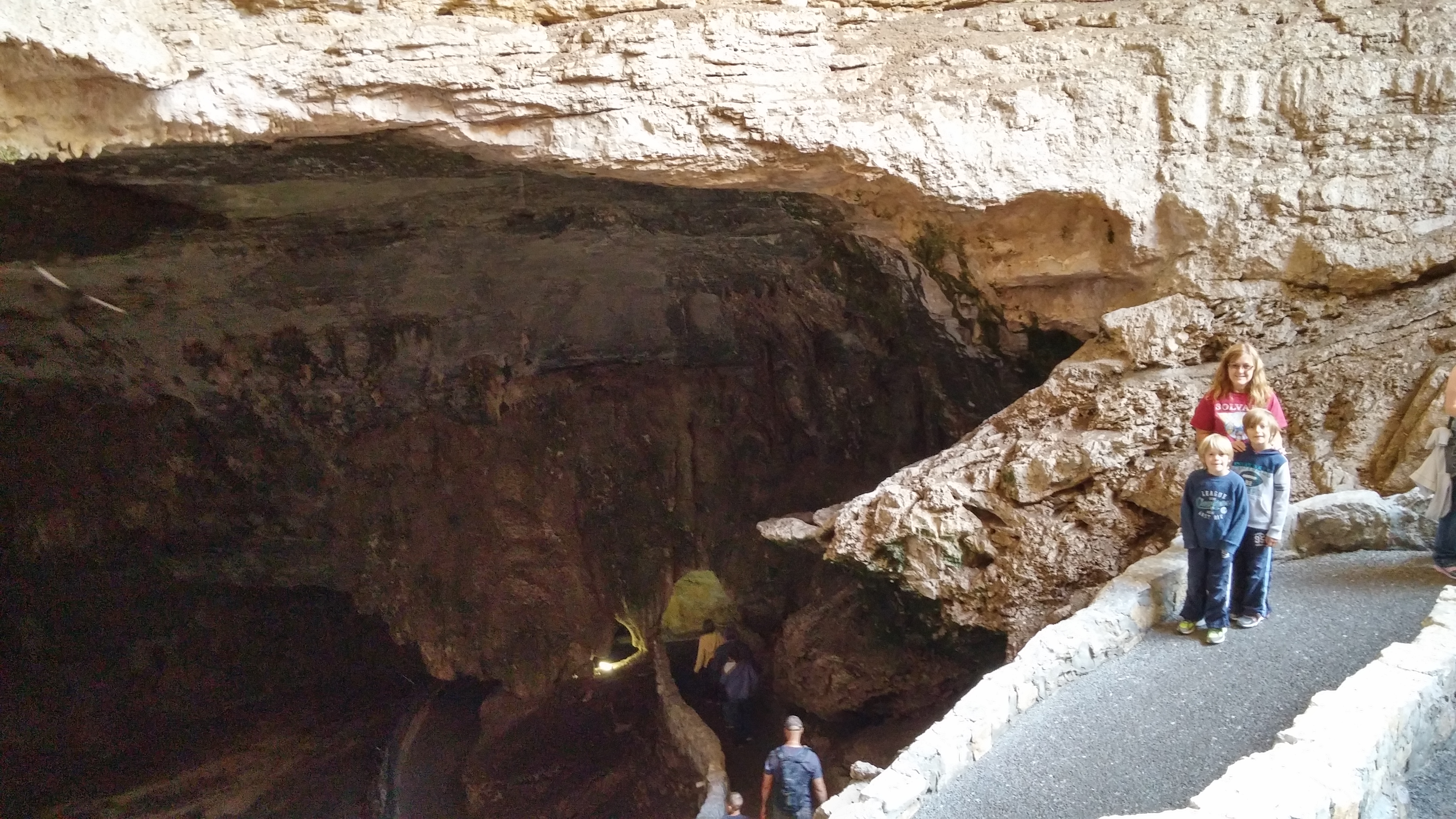 We visited Carlsbad Caverns National Park in New Mexico yesterday and it was awesome!  We hiked the natural trail down into the cave and hiked all the trails underground and then rode up the elevator.  It was really cool to see stores, a restroom and an elevator underground!  The caves are home to a lot of bats, but unfortunately we were there a week too early for the evening show of bat flights out of the cave that I heard was really cool to watch.