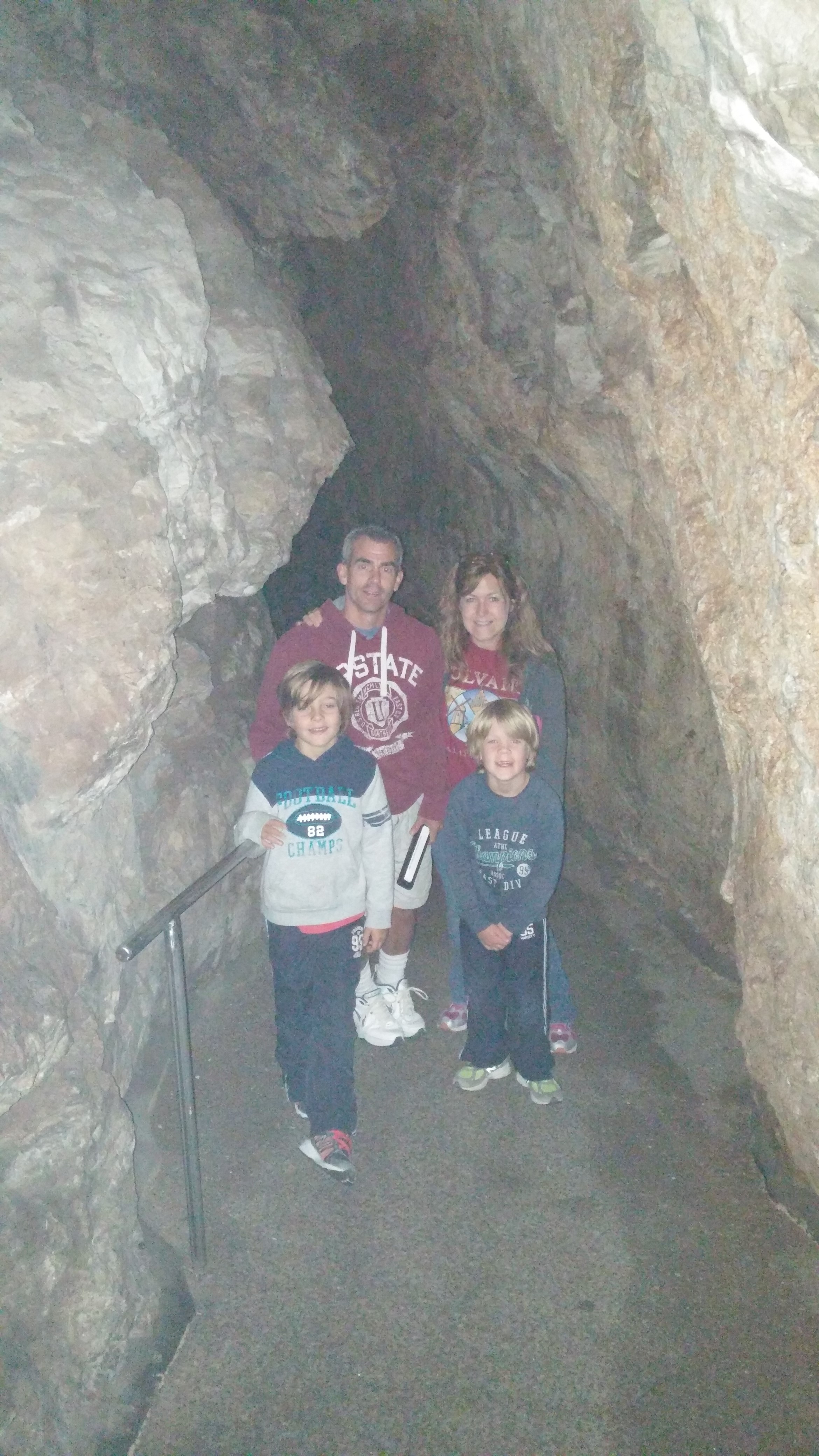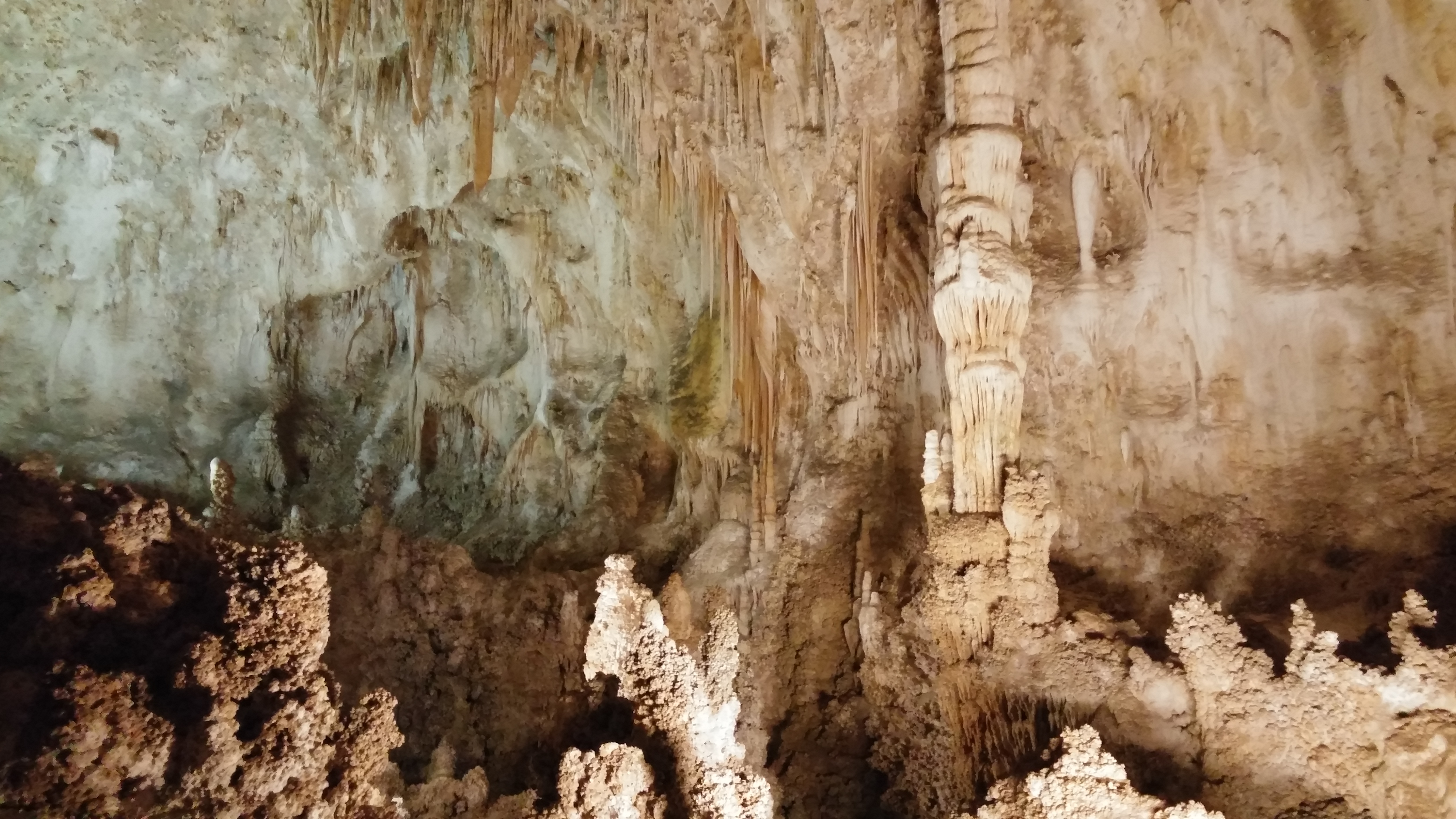 Doing some roadschooling, learning about stalactites and stalagmites: