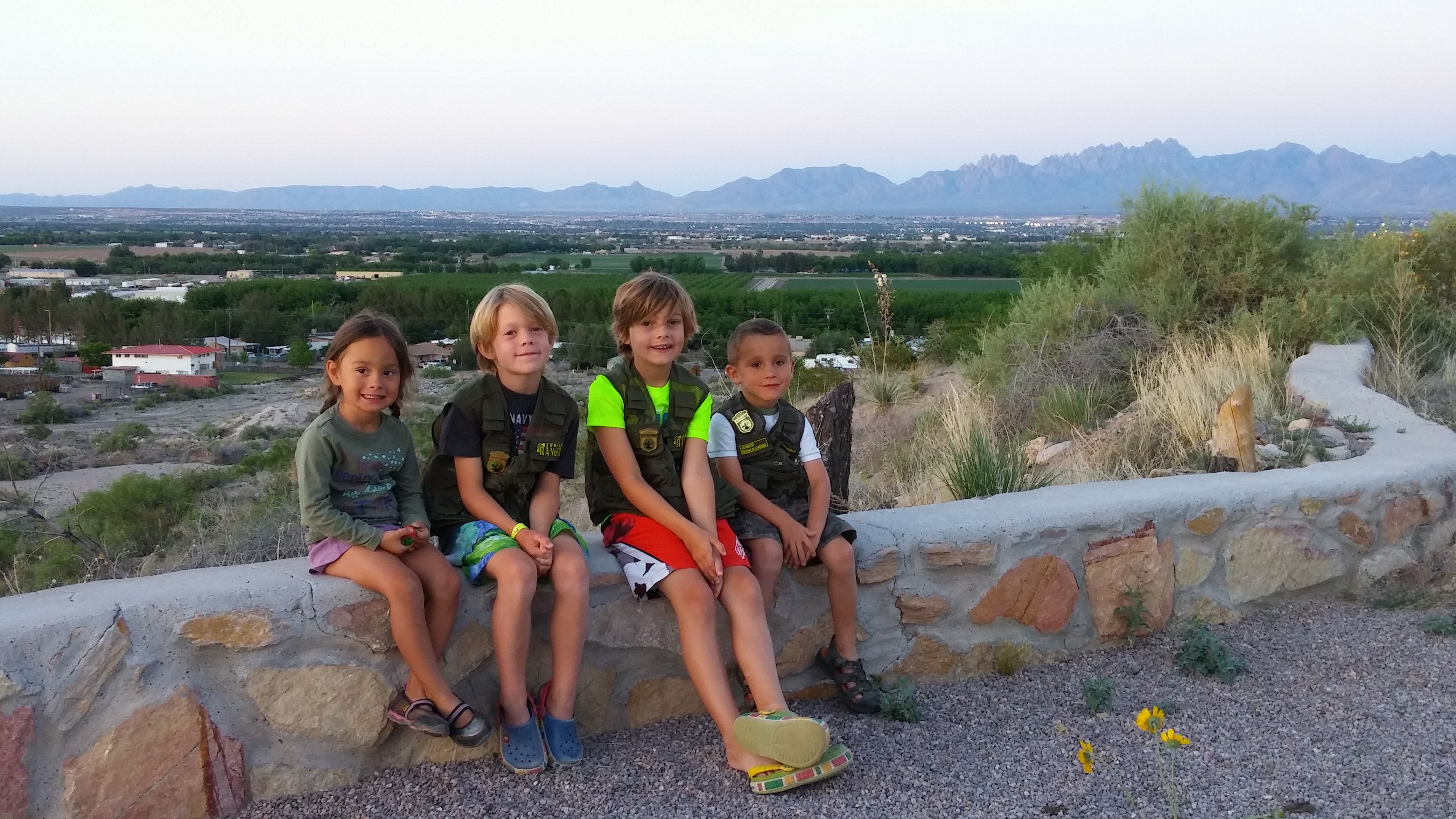Back at the campsite in Las Cruces wearing their new badges…