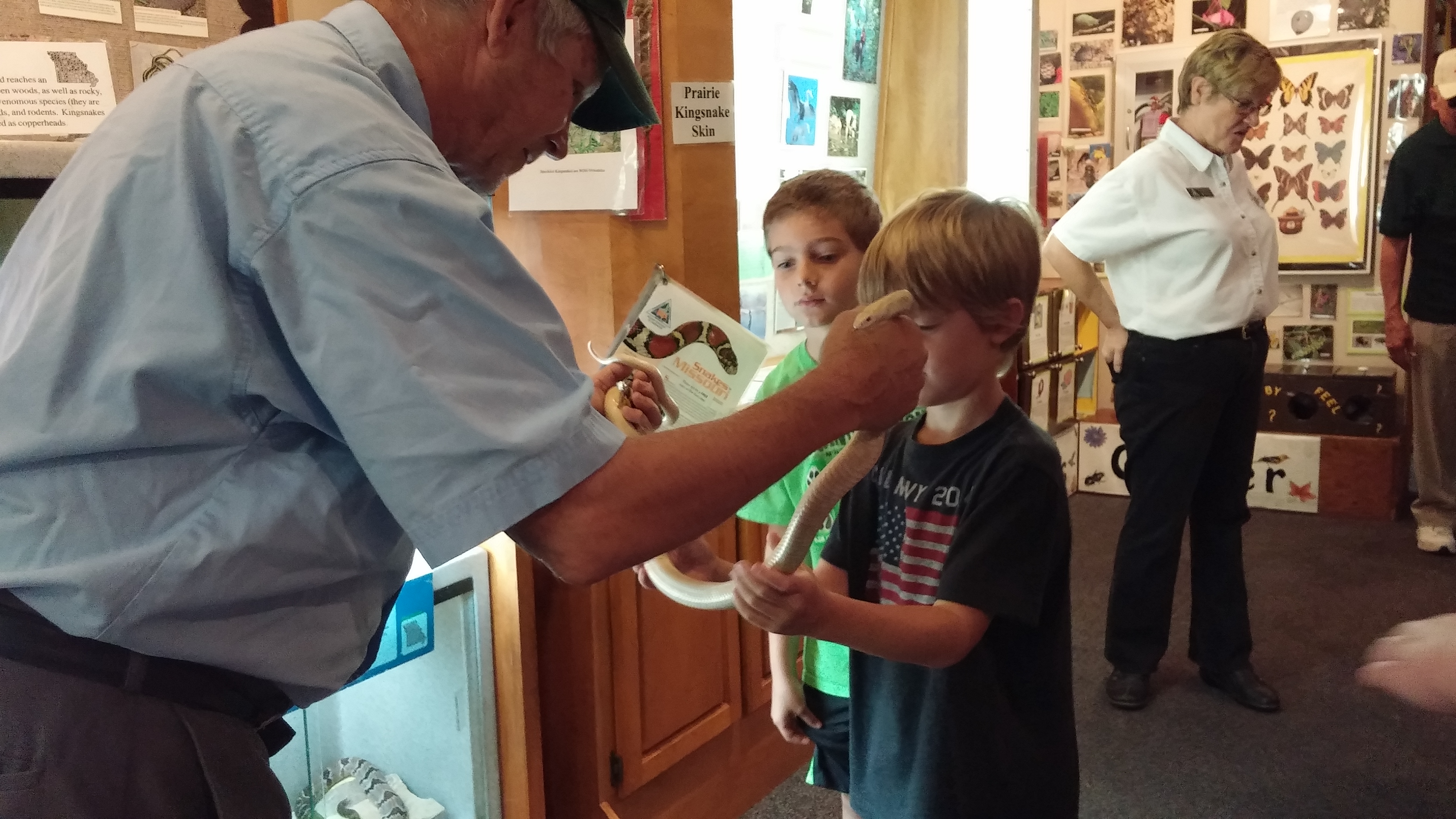 Touching an albino king snake.  I was surprised how soft this snake felt.  Not slimy like they look, but very soft.
