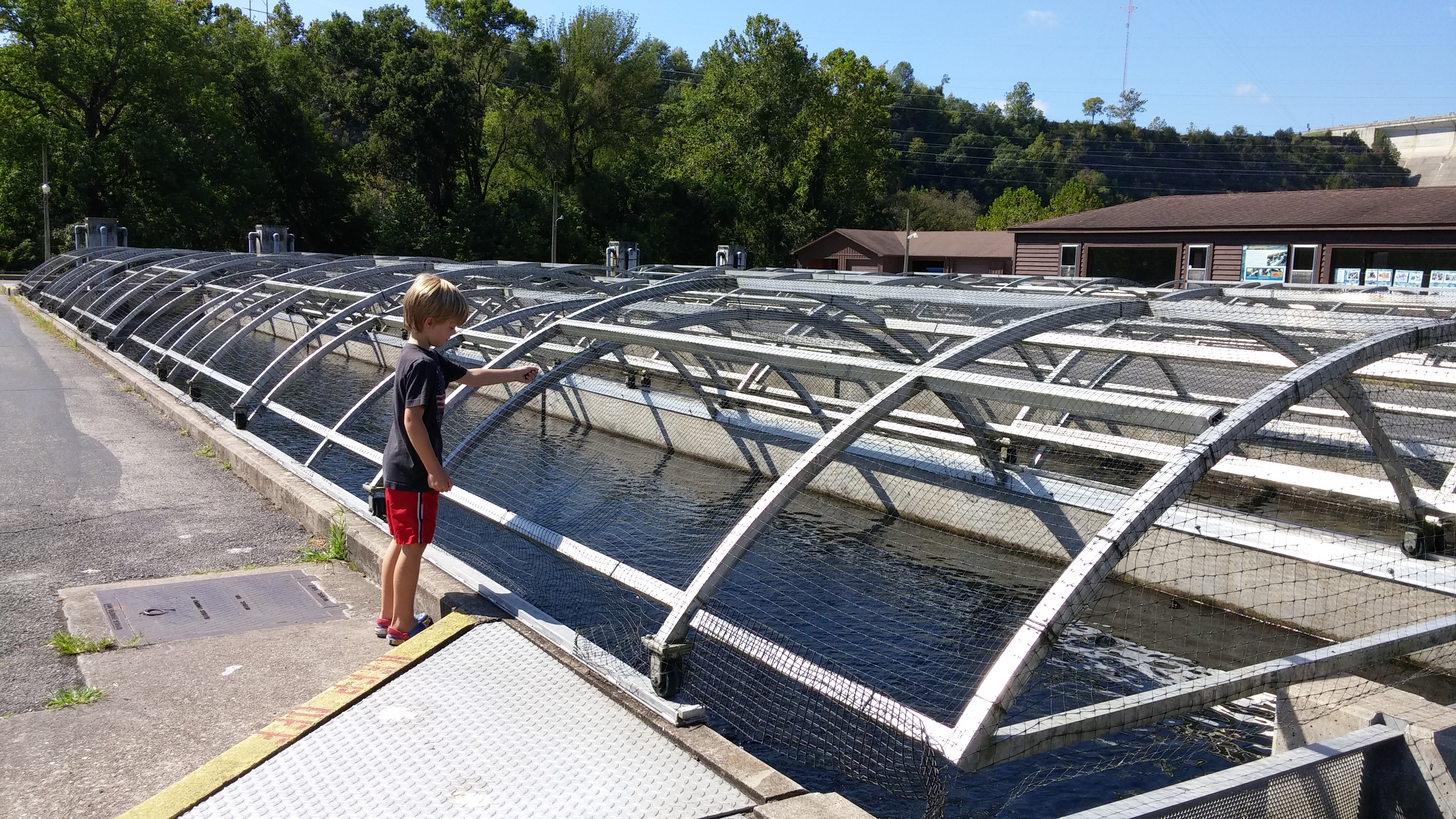 Another day we went to the Shepherd of the Hills Fish Hatchery where we learned how they breed trout to later be released into Lake Taneycomo.  We watched an interesting short film in the visitor center that explained the whole process.  The visitor center also had lots of reptiles for us to check out.