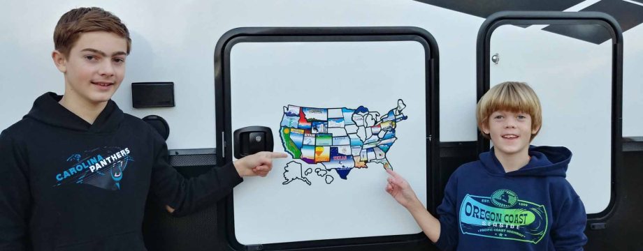 We had to get a new state sticker map since the old one was still stuck on the Heartland. No we did not visit all these states yet in the new RV, but we decided we did not need to start over on the sticker map.