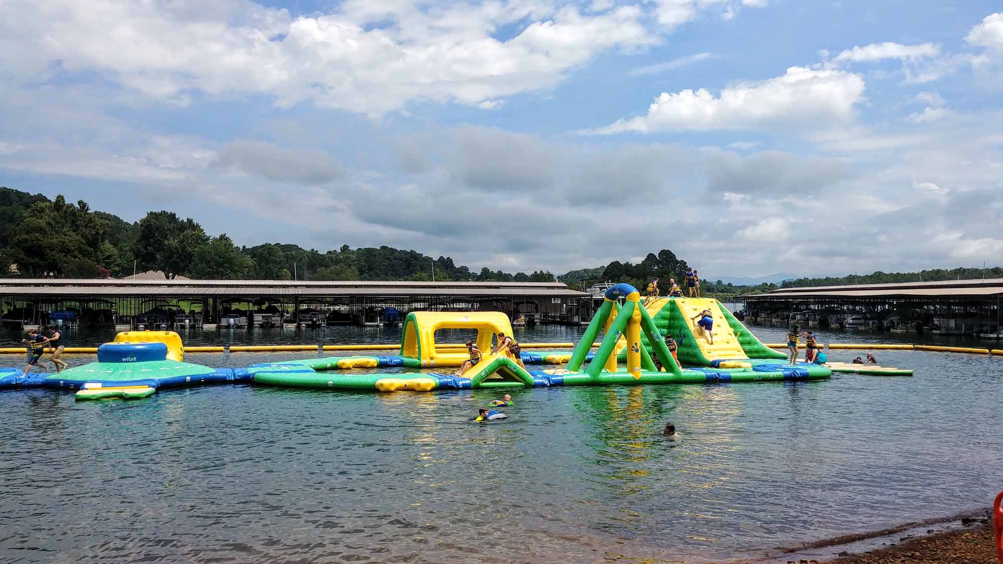 Another fun place to go in Hiawassee is the inflatable water park, Splash Island. The first time we took the boys Chris & I just watched. We realized it looked like so much fun, so next time we played on the water park with them. It was so much fun, but wow! I had no idea how out of shape I was until I did that. That is hard work, and I was so sore for the next few days!