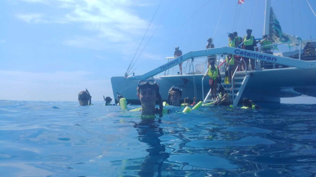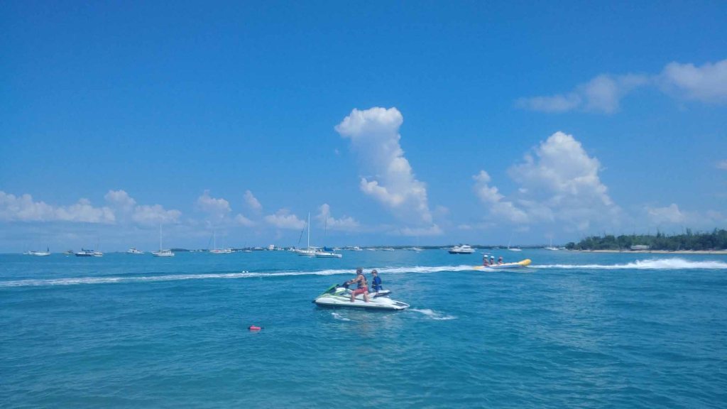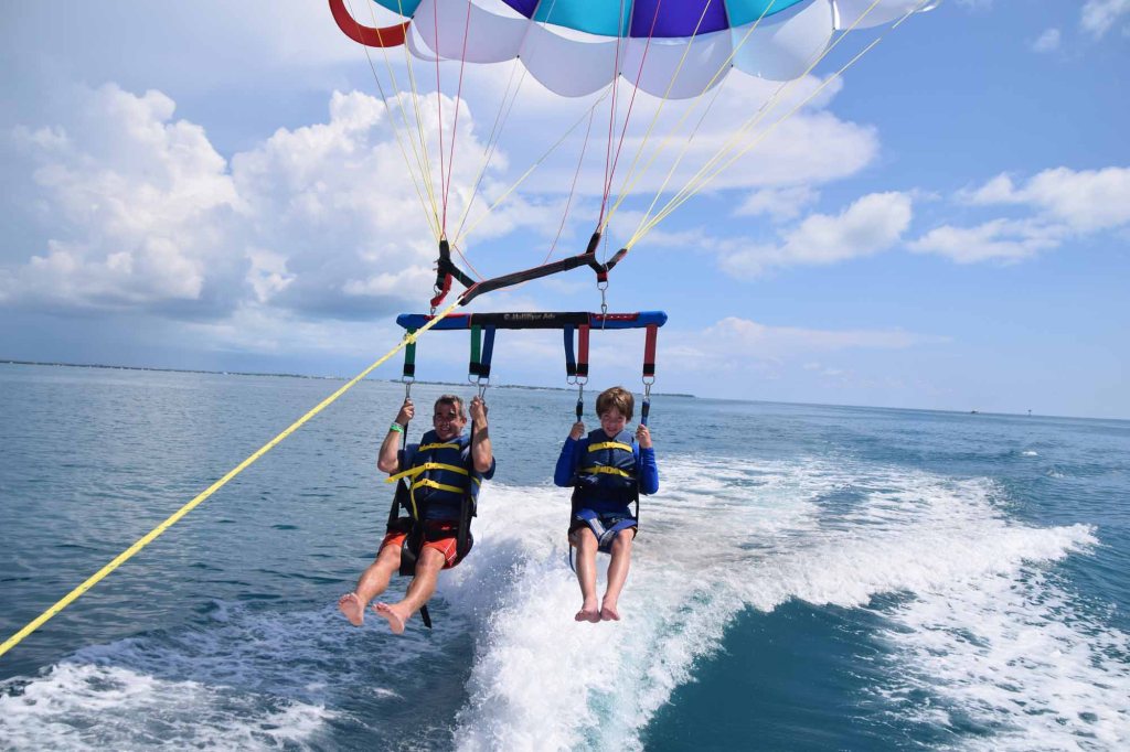 We were blessed with a perfectly beautiful day for this adventure which included snorkeling, jet skiing, banana boat rides and our favorite — parasailing.