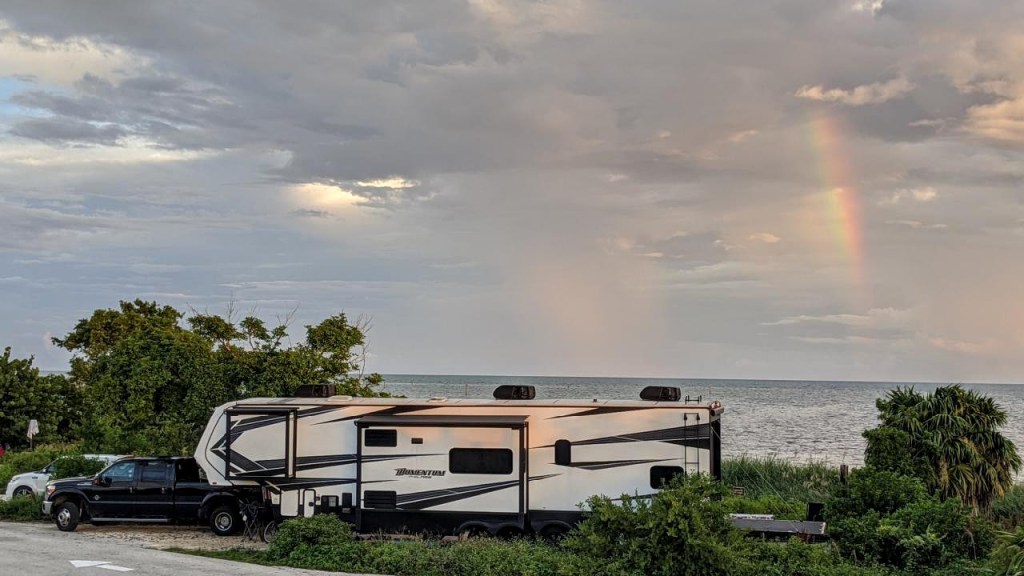 A Fulltime Family that we met our first year on the road (the Reyes family) met up with us at Curry Hammock. Michele took this beautiful picture of our RV with a rainbow in the background. Michele and I had lots of fun snorkeling together.