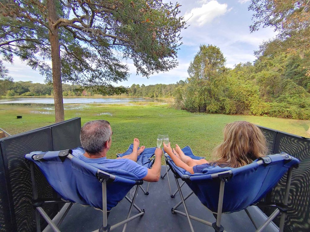 From there we headed to Meaher State Park in Mobile, Alabama where our good friends the Norstrems came to visit. This was our second visit to this state park. We love that there are so many sites backed up to the water, and the sunsets are amazing!