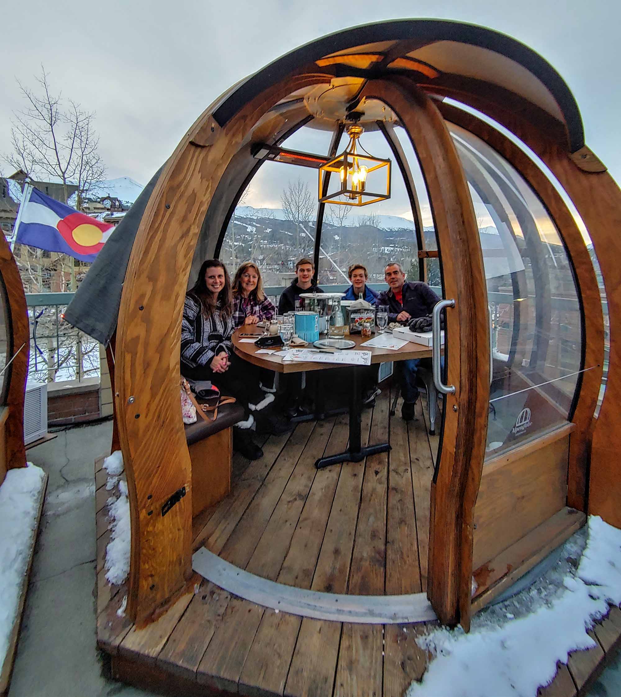 We had dinner at this really cool pizzeria with little snow globes to sit in. They serve only plant based food which we were not sure we would like, but it was actually very good.