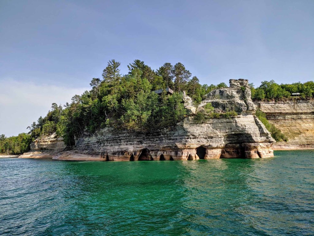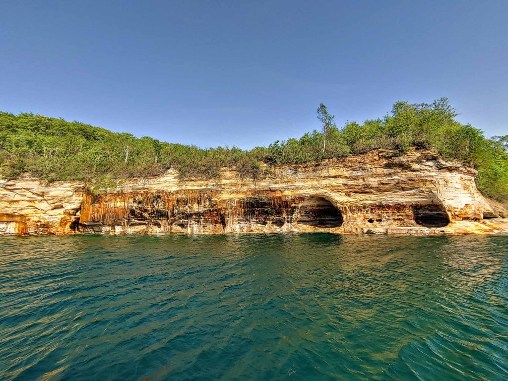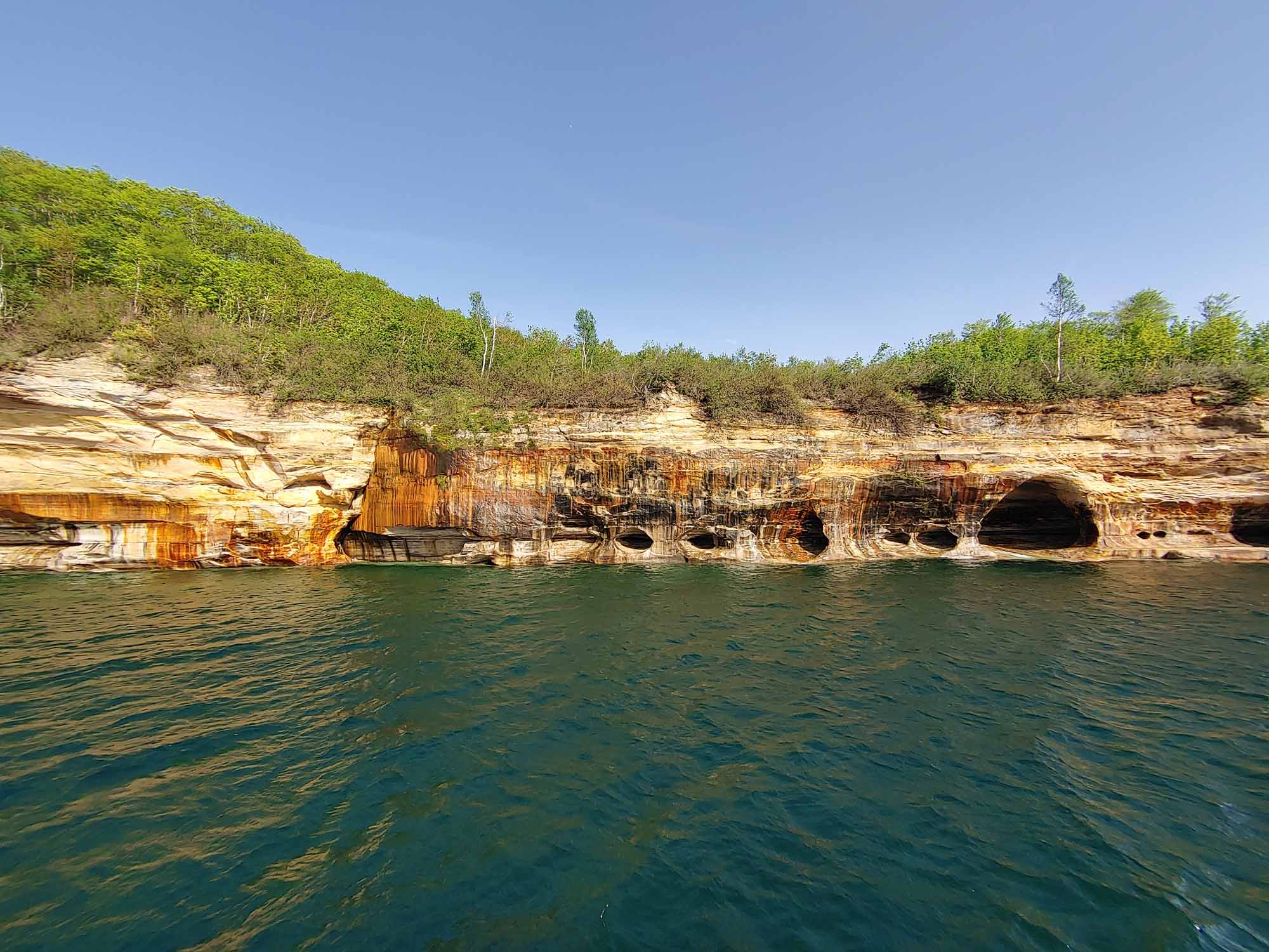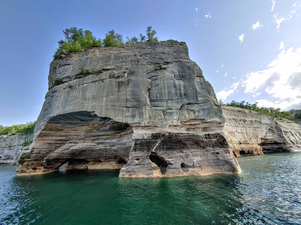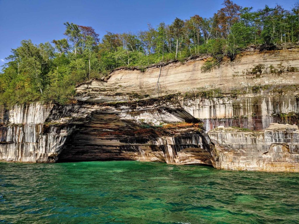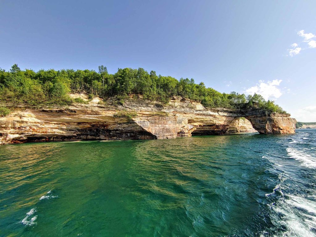 We took this tour with Pictured Rocks Cruises. The tour lasts about 2.5 hours and it was amazing! The ship captain narrates on the ride along the lakeshore to let you know about the different rock formations you’ll see. He will even take the boat into a cove if the water is calm enough to do so.