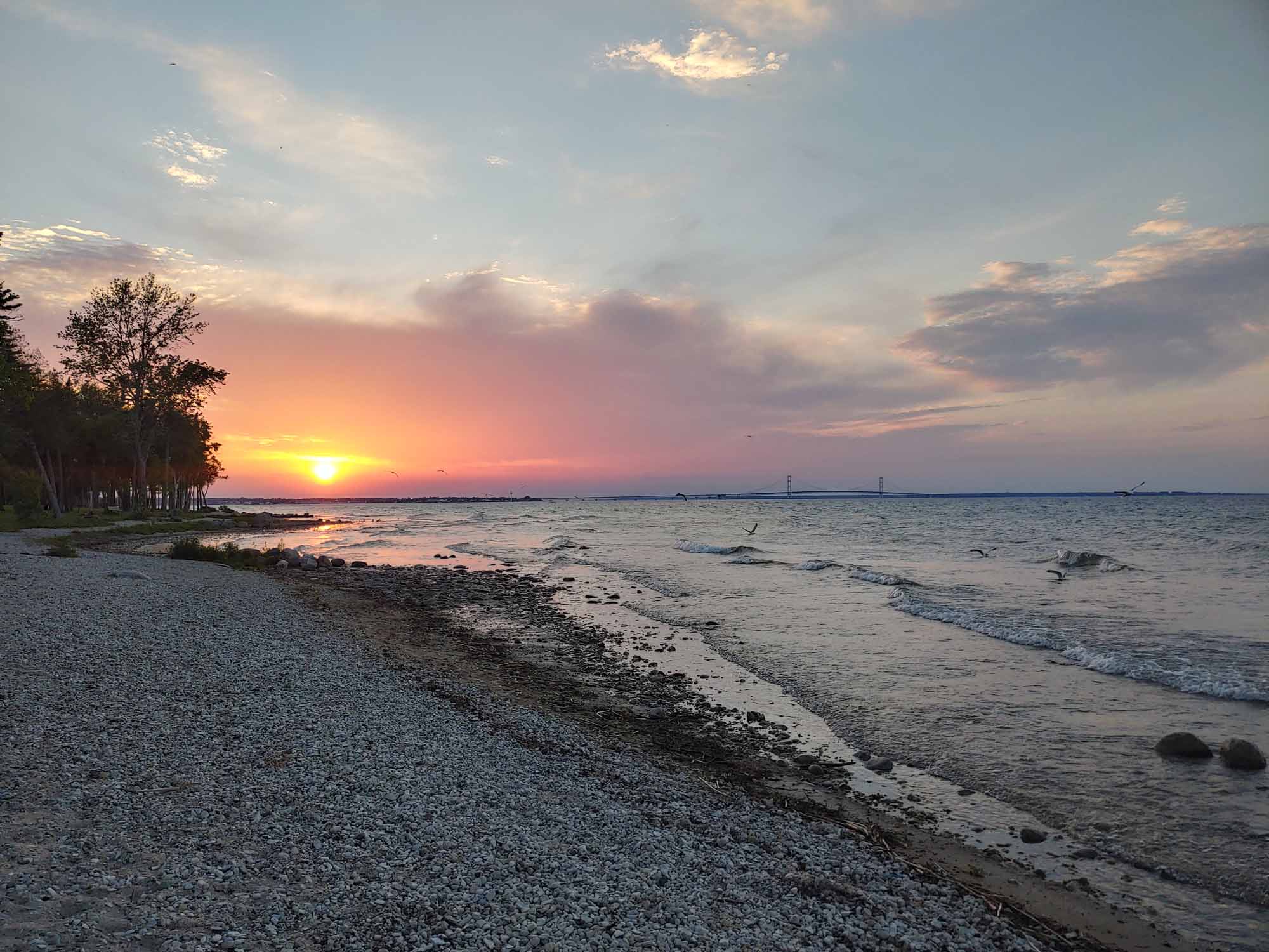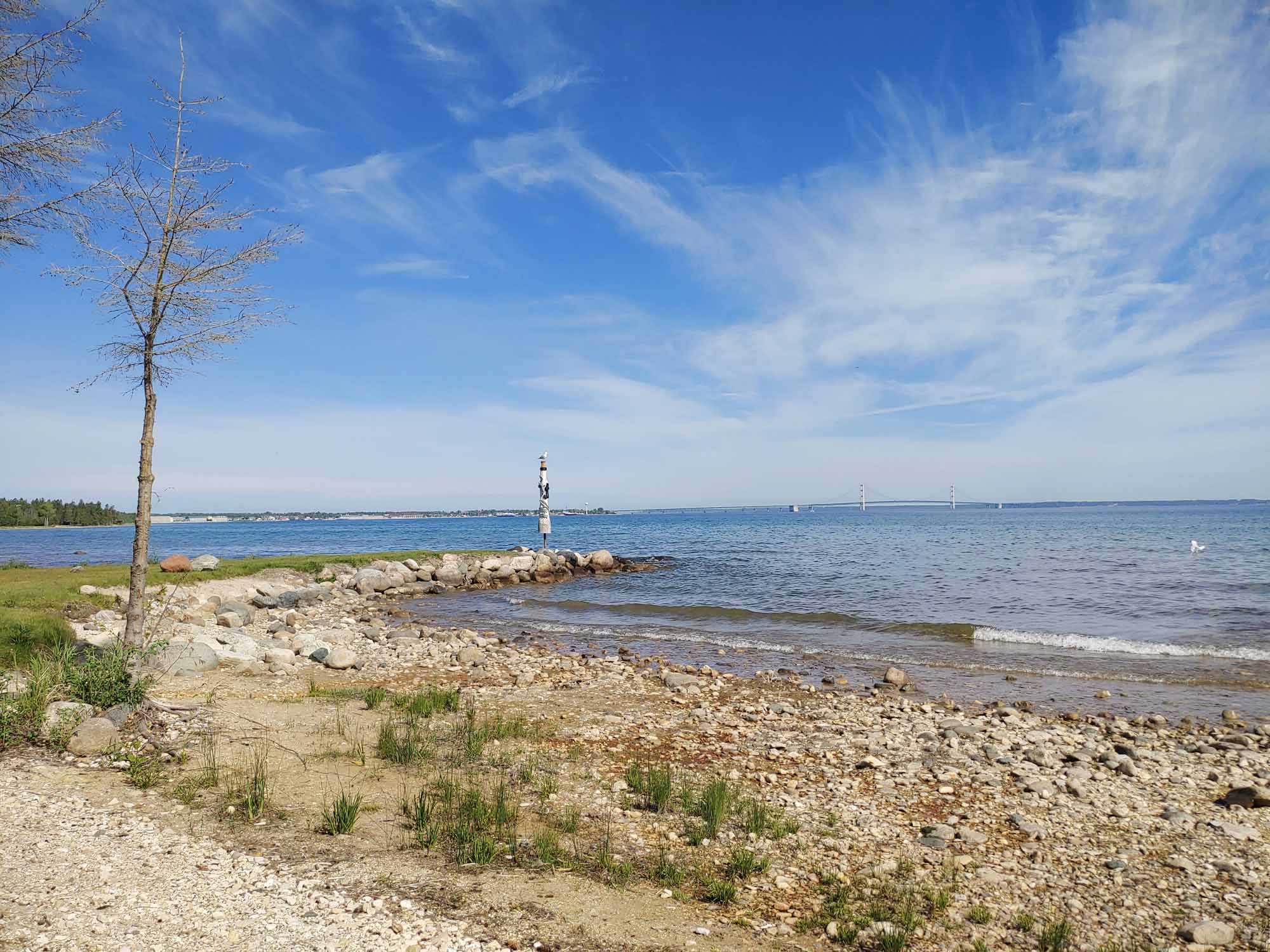 We stayed at Mackinaw Mill Creek Campground in Mackinaw City which is now one of my new favorite campgrounds. It is just over the Mackinac Bridge on the lower peninsula of Michigan, on beautiful Lake Huron.