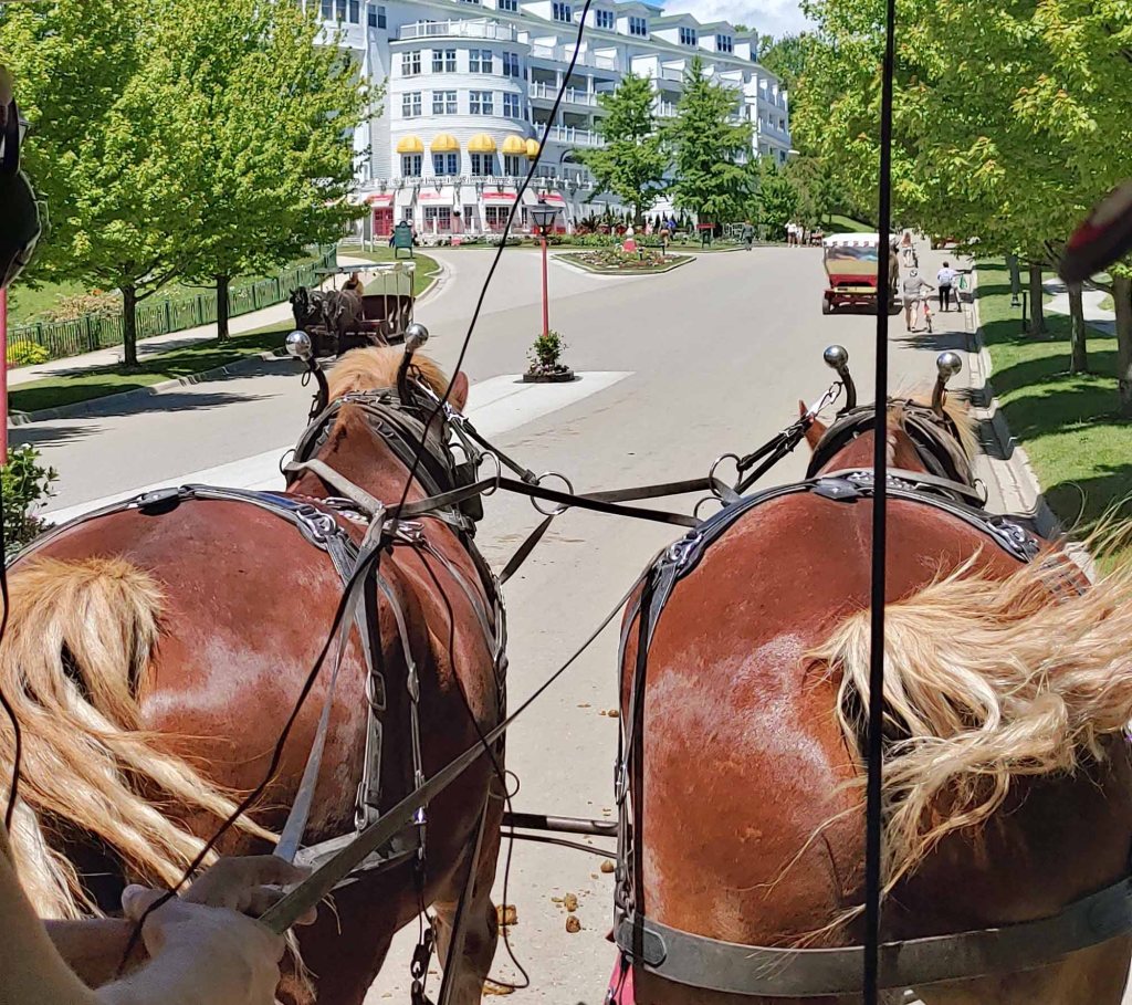 Visiting Mackinac Island was so much fun! There are no vehicles allowed on the island. The only modes of transportation are bicycles, horses and horse-drawn carriages in addition to walking of course. We took the ferry over from Mackinaw City.