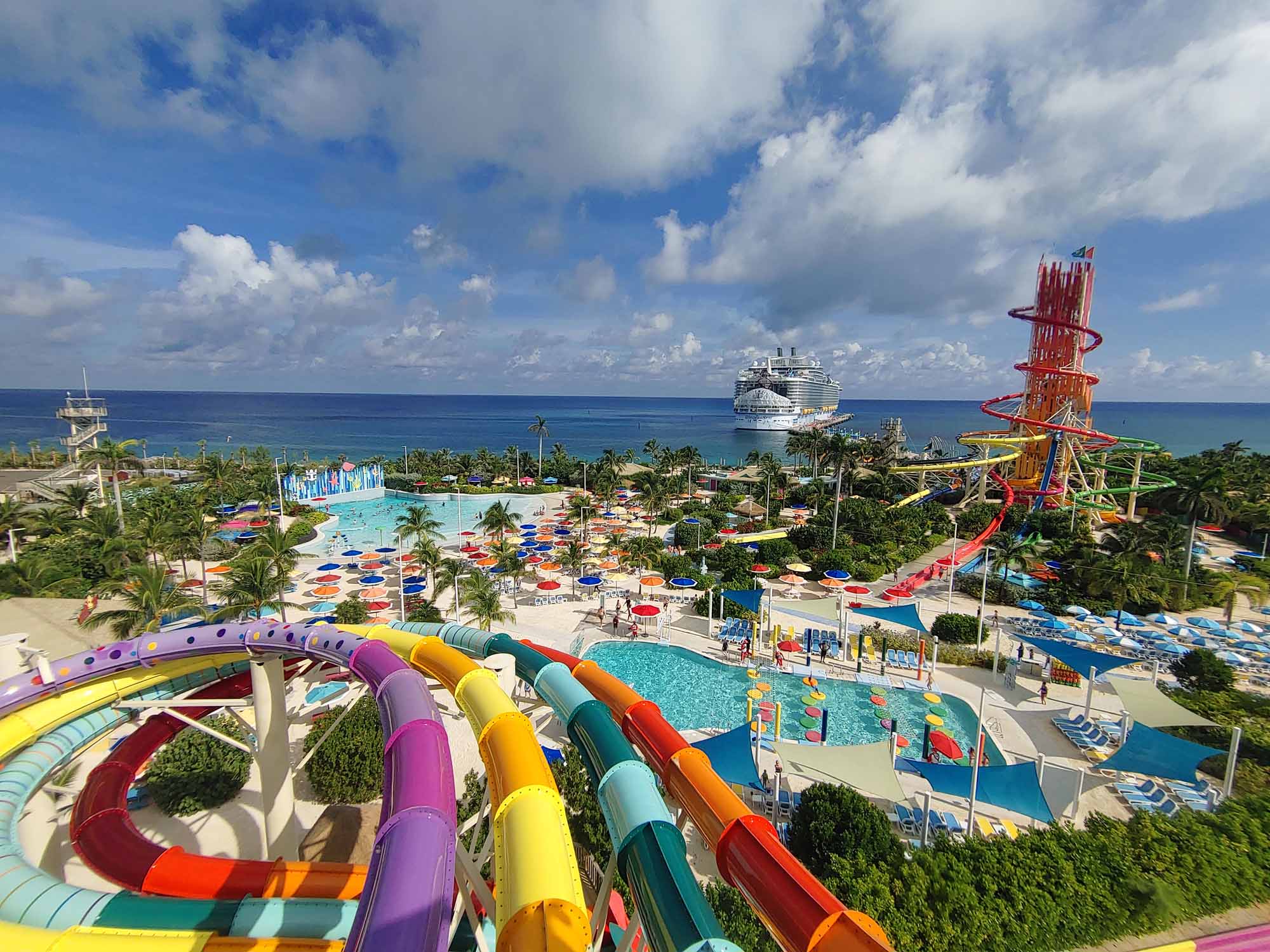 We cruised out of Port Canaveral, Florida and spent the next day at Coco Cay. They call it “Perfect Day at Coco Cay” for a reason because it literally was a “perfect day”. Coco Cay has a water park and several beaches with so many opportunities for fun things to do. We spent part of the day at the water park which was super fun. We also enjoyed snorkeling in the ocean and relaxing in the enormous Oasis Lagoon pool.
