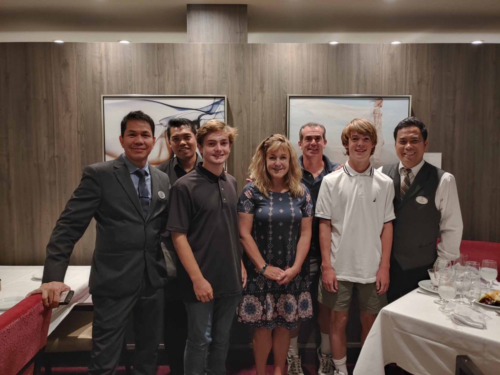 One of the highlights of our cruise was the exceptional service in the Main Dining Room. Our friends below made dinner each night such a special treat because they spoiled us rotten! Once we got home we weren’t sure how we were going to live without them at dinnertime. ๐